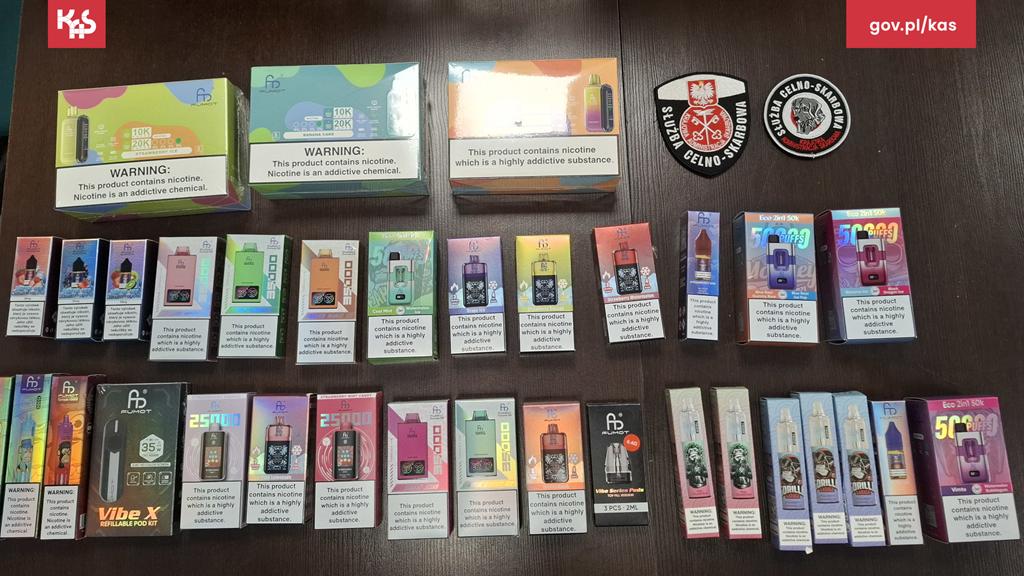 Podczas przeszukania sortowni pies służbowy "Panda" oznaczył 16 przesyłek kurierskich. Szczegółowa rewizja paczek zakończyła się wykryciem 2533 sztuk nielegalnych wyrobów akcyzowych zawierających prawie 51 litrów płynów do e-papierosów