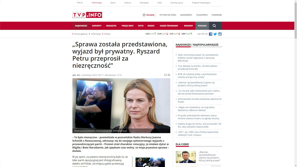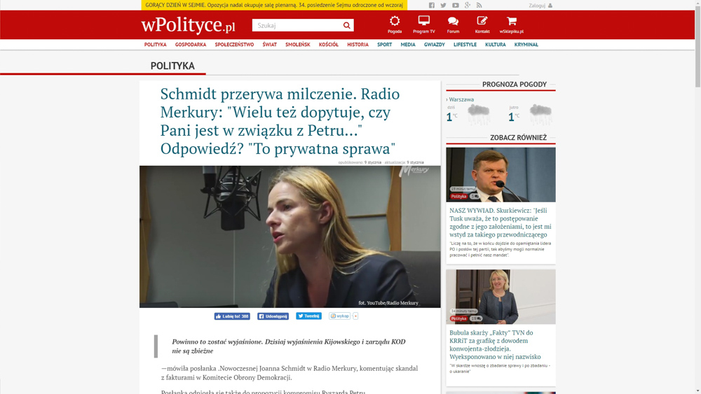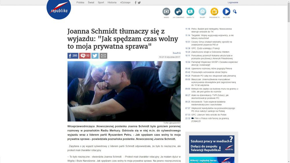 9 stycznia informacja o naszym radiu, w kontekście posłanki Nowoczesnej pojawiła się też w Panoramie, a także m.in. "w polityce.pl", gdzie był artykuł z odniesieniem do naszego kanału You Tube, a także w "Niezależnej.pl", Dorzeczy.pl" i w Telewizji Republika.
