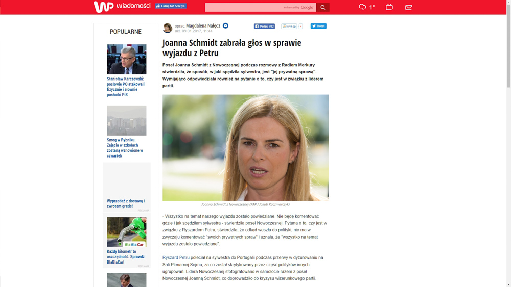Wystąpienie posłanki Nowoczesnej w Radiu Merkury opisywały też m.in. niezwykle poczytne portale o charakterze plotkarskim.