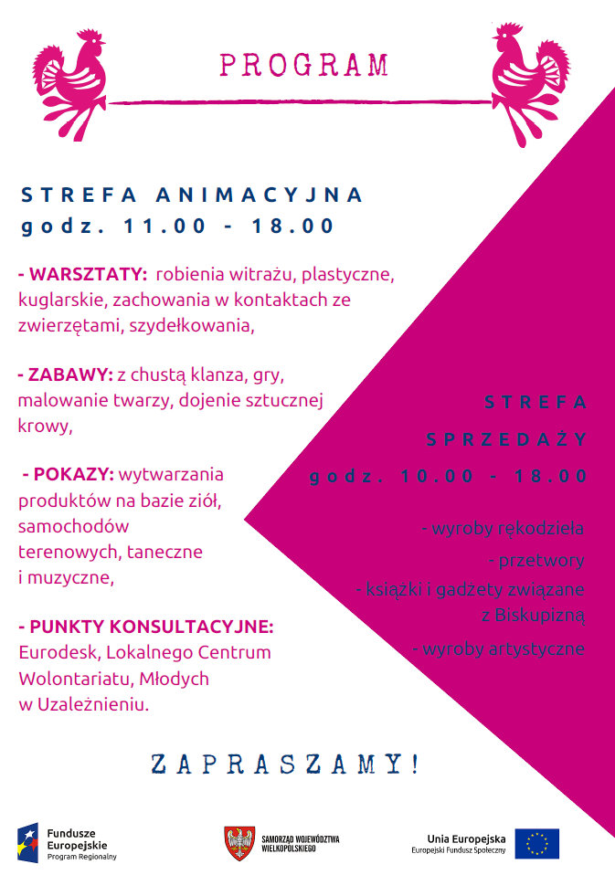 Koguty zaczynają głośno piać zapowiadając zbliżające się wyjątkowe wydarzenie w Lesznie! Już 18 czerwca podczas Pikniku Szybowcowego odbędą się Targi Ekonomii Społecznej – Jarmark Pomysłów. Jarmark Pomysłów jest największym wydarzeniem w subregionie leszczyńskim, podczas którego mogą się zaprezentować liczne podmioty ekonomii społecznej z Leszczyńskiego tj. fundacje, stowarzyszenia, spółdzielnie socjalne, centra integracji społecznej, warsztaty terapii zajęciowej. Podczas tegorocznej edycji Targów dla odwiedzających zostaną przygotowane dwie strefy: animacji i sprzedaży.