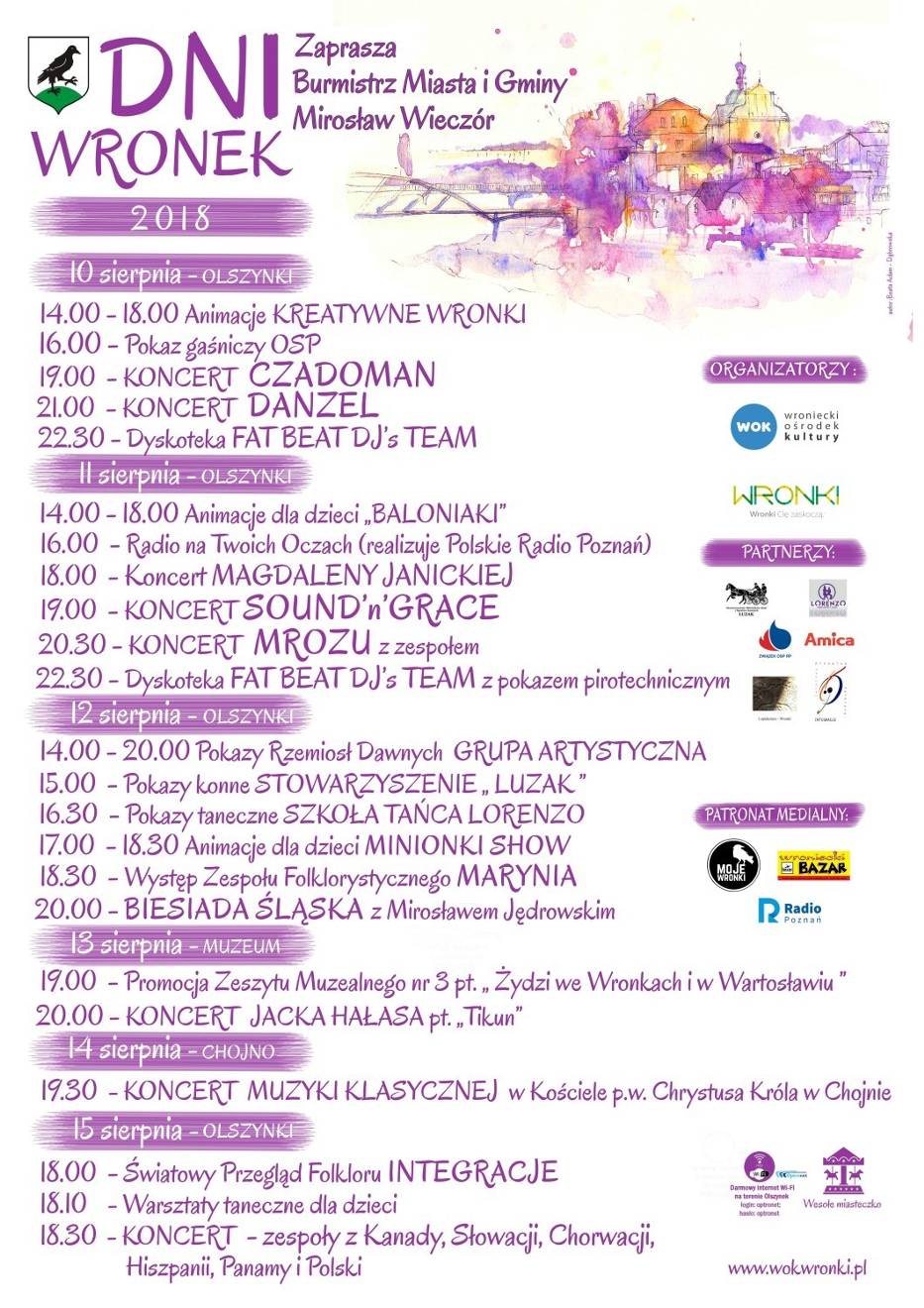 Obchody Święta Miasta rozpoczynają się już w piątek, 10 sierpnia i trwać będą do kolejnej środy. W programie zaplanowano wiele koncertów, warsztatów tanecznych oraz animacji dla najmłodszych. Nie zabraknie pokazów strażackich i pirotechnicznych.