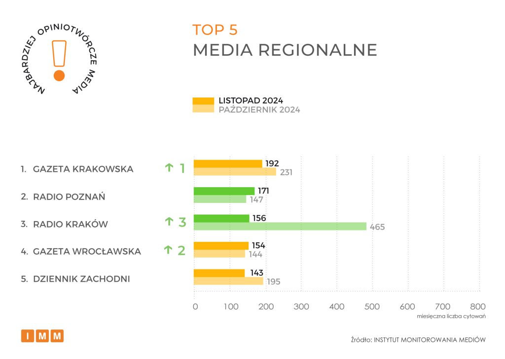 Analizę częstotliwości cytowań poszczególnych mediów przez inne redakcje Instytut Monitorowania Mediów przeprowadził na podstawie ponad 55 i pół tysiąca przekazów pochodzących z monitoringu prasy, radia i telewizji oraz portali internetowych, w których pojawiały się cytowania ze wskazaniem nazwy mediów prasowych, serwisów internetowych, stacji radiowych i telewizyjnych lub tytuły ich programów. Najnowsze badanie dotyczy okresu 1-30 listopada 2024 roku.