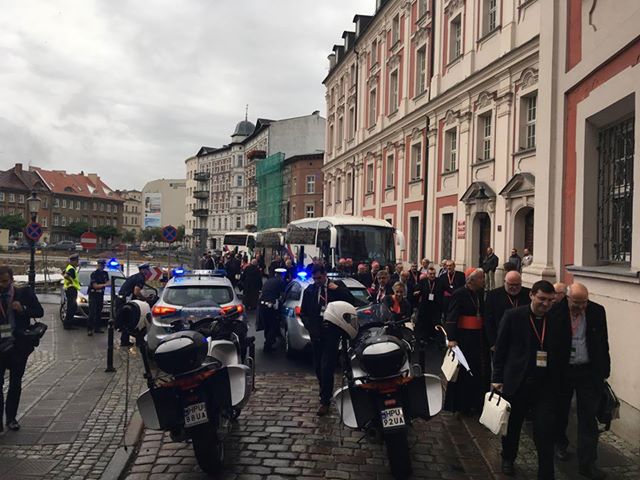 Uczestnicy Zgromadzenia Biskupów Europy przenoszą się z Hotelu Bazar do Fary Poznańskiej.