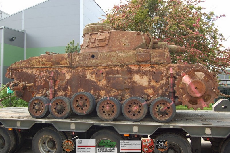 Kustosz Muzeum Broni Pancernej major Tomasz Ogrodniczuk mówi, że pojazd jest w dobrym stanie, ale brakuje podstawowych podzespołów napędowych: skrzyni biegów, silnika, wału Okazuje się, że właśnie te części posiada warszawskie Muzeum Wojska Polskiego. Jak dowiedziało się Radio Merkury, w tej sprawie zawarto już porozumienie i części przyjadą do Poznania. Pojazd będzie więc składany z oryginalnych części