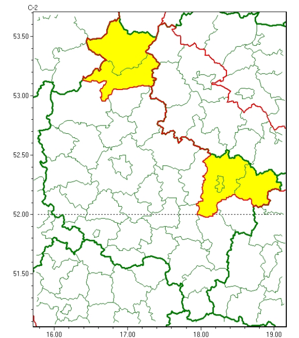 Ostrzeżenia dotyczą powiatów pilskiego, złotowskiego, kolskiego, konińskiego i Konina. Obowiązują dziś od 18 co najmniej do jutra.