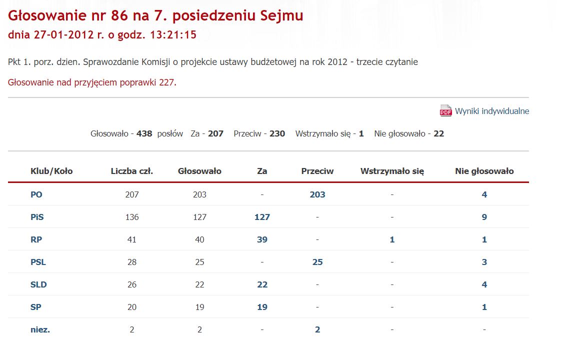 To był rok 2012, gdy głosowano budżet rządu koalicji PO-PSL. Poprawka nr 227 dotyczyła przeznaczenia 2 mln złotych na utworzenie rezerwy celowej pod nazwą "Pokrycie kosztów podawania pacjentom w formie badań klinicznych szczepionki antyczerniakowej". Przeciwko poprawce byli wszyscy obecni wtedy posłowie rządzącej koalicji PO-PSL. Cała opozycja za.