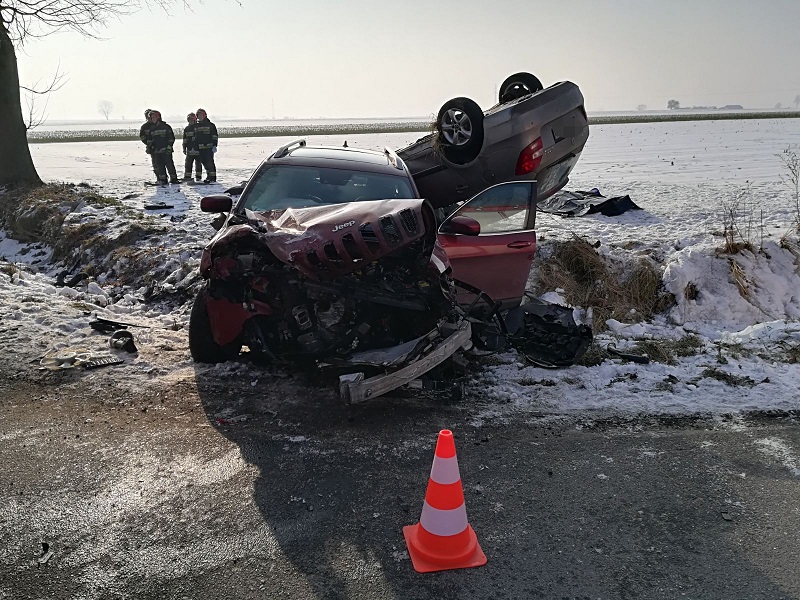 Samochód marki Jeep zderzył się ze Skodą. Nie żyje 64 letni kierowca Skody, a pasażerka została przewieziona do szpitala w Gnieźnie. 43 letniemu kierowcy drugiego samochodu nie stało się nic poważnego.
