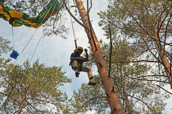 W poniedziałek doszło do nietypowej akcji pilskich strażaków. Około godziny 9.00 dostali sygnał o spadochroniarzu zwisającym z drzewa przy ulicy Koszalińskiej w Pile.