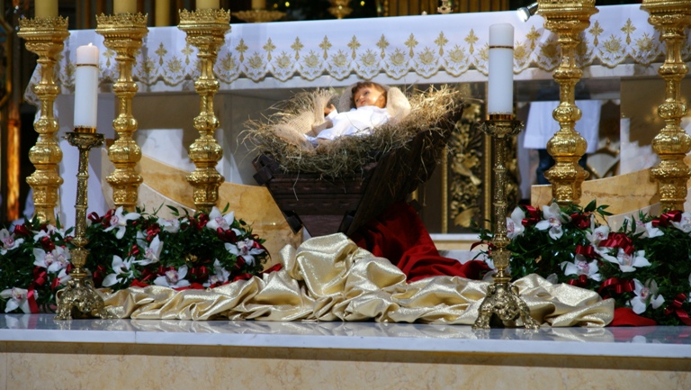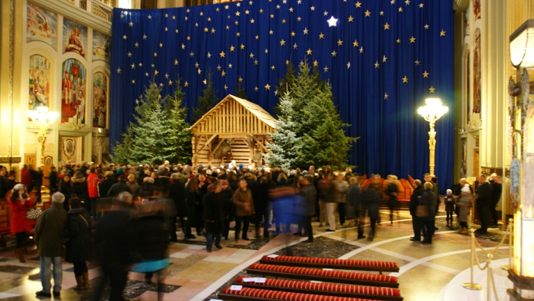 Stajenka Betlejemska znajduje się w zachodniej nawie świątyni, czyli - po lewej stronie ołatarza a ze względu na swoją wielkość - nie sposób jej nie zauważyć. Z daleka widać też naturalnej wielkości drzewa. W stajence ustawiono już figury zwierząt, świętego Józefa i Maryi, a w Wigilię pojawiła się najważniejsza postać tych świąt - mówi Robert Adamczyk z biuraprasowego sanktuarium.