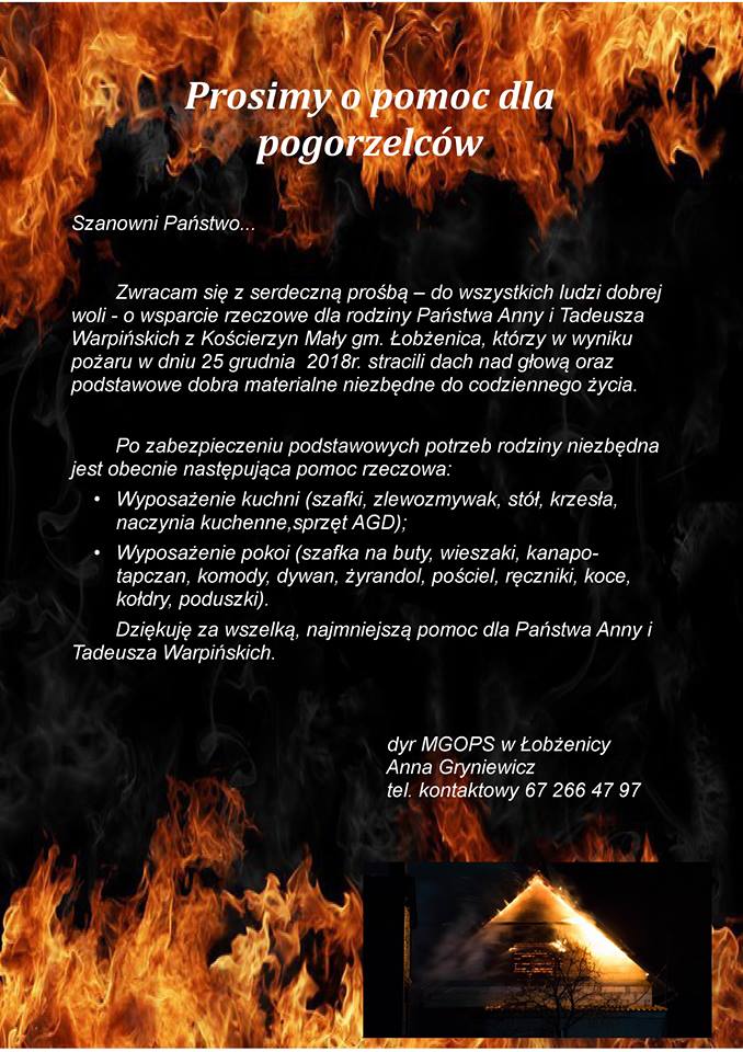 - Wspólnymi siłami udało nam się znaleźć zastępcze lokum, jednak teraz musimy je wyposażyć. Potrzebne jest właściwie wszystko, meble, sprzęt AGD, ale także najdrobniejsze rzeczy jak naczynia, garnki, ręczniki i pościel. – mówi dyrektor Miejsko-Gminnego Ośrodka Pomocy Społecznej w Łobżenicy Anna Gryniewicz.