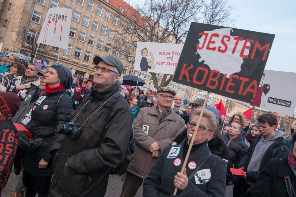 Na Placu Wolności była też kontrmanifestacja (zdecydowanie mniej liczna - mniej niż 100 osób). Jednym z organizatorów był Kongres Rodzin i Kobiet Konserwatywnych. Jego przedstawicielka - radna miejska Ewa Jemielity powiedziała, że to protest przeciwko aborcji i in-vitro: "Protest przeciwko domaganiu się przez tą hałaśliwą i lewacką grupę liberalizacji prawa do aborcji. Uważamy, że każde życie jest cenne i należy je chronić i dlatego tutaj dzisiaj jesteśmy, żeby dać sygnał, żeby się nie martwili, że hałaśliwa grupa próbuje zawłaszczyć przestrzeń publiczną".
