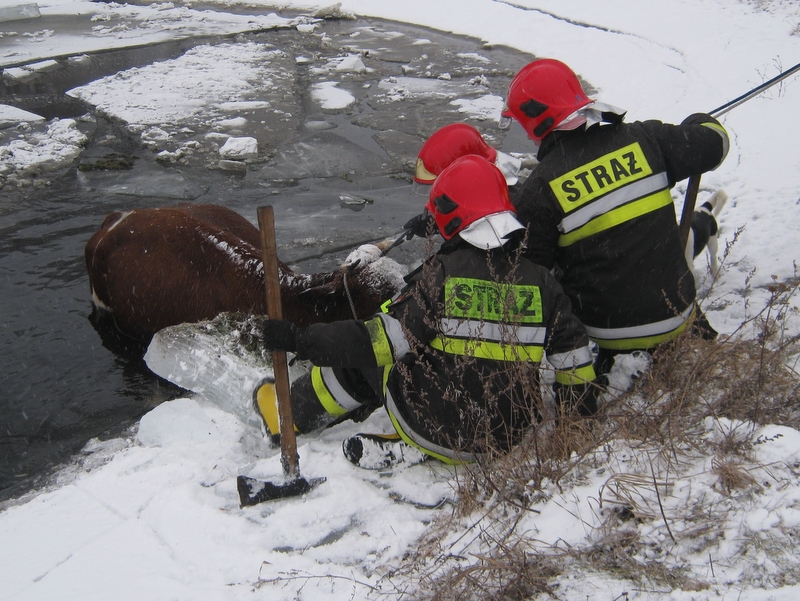 Na rogi założono jej liny. Po wyciągnięciu zwierzęcia z wody, sprowadzono nagrzewnicę, by krowę ogrzać. Obłożono ją też sianem. Niestety, po kilkunastu minutach krowa zdechła.