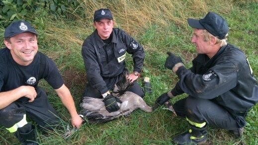 Akcji ratunkowej podjęli się jednak zawiadomieni przez kobietę strażacy z OSP Wrząca Wielka, którzy przez blisko dwie godziny biegali za żurawiem z siatką. Zadanie było o tyle trudniejsze, że ten duży ptak pomimo kontuzji był bardzo płochliwy i żwawy. Wykazywał się znakomitą czujnością. Te zadanie kosztowało strażackich druhów bardzo wiele wysiłku, ale akcja została zakończona sukcesem.