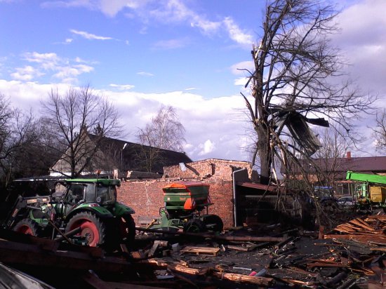 Rano w Wielkopolsce wiatr ucichł, jednak meteorolodzy zapowiadają, iż ma znów silnie wiać koło południa. We wtorek nad Henrykowem i Olszewem przeszła lokalna trąba powietrzna, która zerwała dachy z 13 budynków, a dwa zniszczyła.