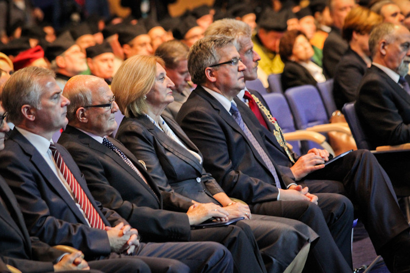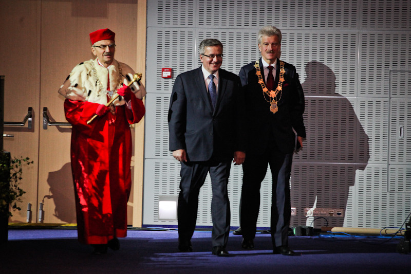 Prezydent podziękował środowisku akademickiemu za jego osiągnięcia. Podziękował też tym, którzy zainwestowali pieniądze w rozwój szkolnictwa wyższego. Zwrócił przy tym uwagę, że przy tego rodzaju inwestycjach trzeba brać pod uwagę to, co przyniosą, nie tylko w sensie ilościowym, ale i pod względem jakości kształcenia. Bronisław Komorowski zachęcił do myślenia o konsolidacji uczelni przy uwzględnieniu ich autonomii.