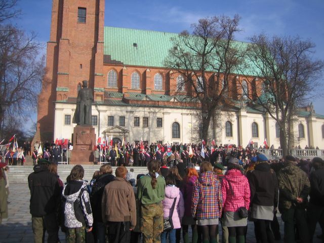 Byli tam też uczestnicy rajdu niepodległości zorganizowanego przez PTTK. Niektórych wyróżniało oryginalne przebranie. Jedna z uczestniczek ubrana była od stóp do głów w biało-czerwone barwy. Jak nam powiedziała jest z pochodzenia krakowianką i wielką patriotką. "Tak trzeba dawać przykład młodym" - mówiła. Inni uczestnicy rajdu opowiadali, że dziś odwiedzali pomniki m.in pomnik księdza Mateusza Zabłockiego, który dowodził obroną Gniezna we wrześniu 1939 roku. Niektórzy po raz pierwszy widzieli wejścia do schronu w Parku Kościuszki, przy pomniku ofiar II wojny światowej.