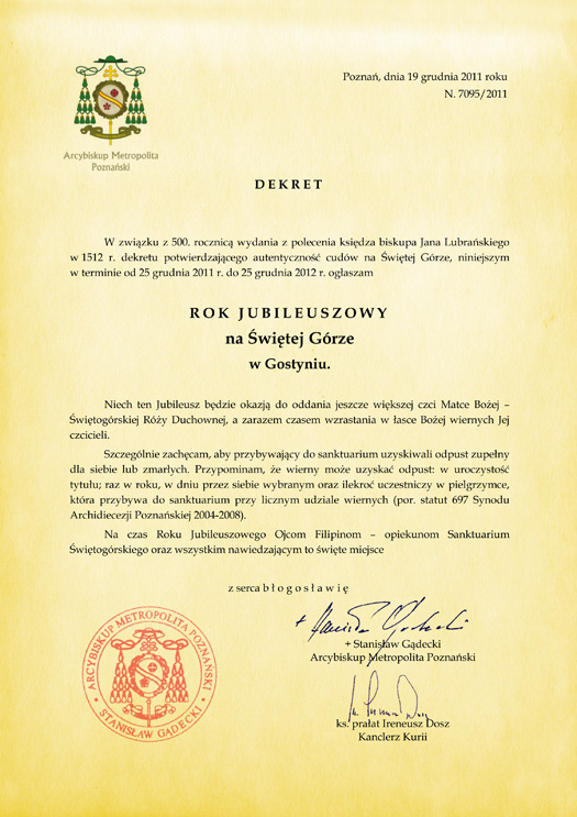 Papieski dar przekaże sanktuarium w niedzielę arcybiskup metropolita poznański Stanisław Gądecki, który będzie przewodniczył uroczystościom. Święta Góra jest pierwszym w Wielkopolsce, a trzecim w Polsce sanktuarium uhonorowanym papieską różą. O historii Świętej Góry opowiedzieli reporterowi Radia Merkury opiekunowie tego miejsca - księża Filipini - świętogórski proboszcz Dariusz Dąbrowski oraz superior, czyli przełożony miejscowej wspólnoty Marek Dudek.
