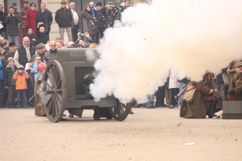 Po nabożeństwie zgromadzeni, w asyście wojska, ułanów i Orkiestry Reprezentacyjnej Miasta Poznania przeszli do centrum miasta. Od rana na placu Wolności swój sprzęt montowały grupy rekonstrukcyjne. Na placu ponownie stanęła „prawosławna” armata, z której o godzinie 11.11 honorową salwę oddał wojewoda wielkopolski Piotr Florek.