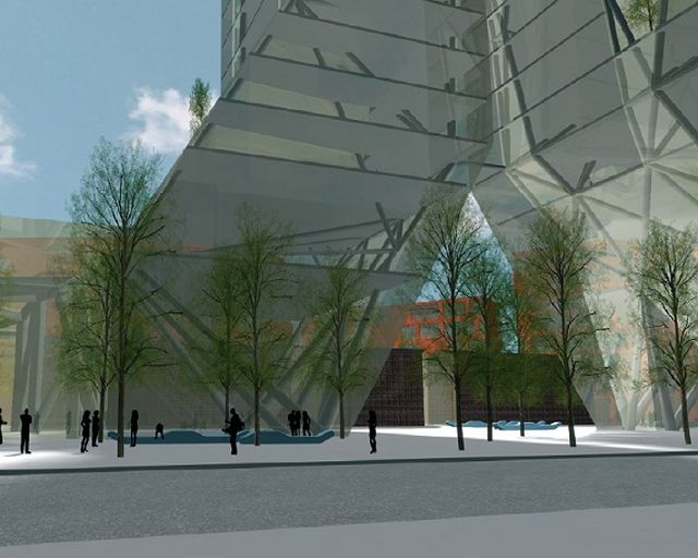 Dwa wieżowce miałyby stanąć u zbiegu ulic Powstańców Wielkopolskich i Kościuszki. Miasto pracuje nad rewitalizacją tego miejsca. - Projekt pojawił się po haśle rzuconym kiedyś w gronie architektów. Na wieść o tym, że mamy takie miejsca w Poznaniu, które chcielibyśmy uporządkować, panowie z Niemiec po paru miesiącach zgłosili się z konkretną interesującą i inspirującą propozycją - przyznaje dyrektor wydziału architektury, Andrzej Nowak