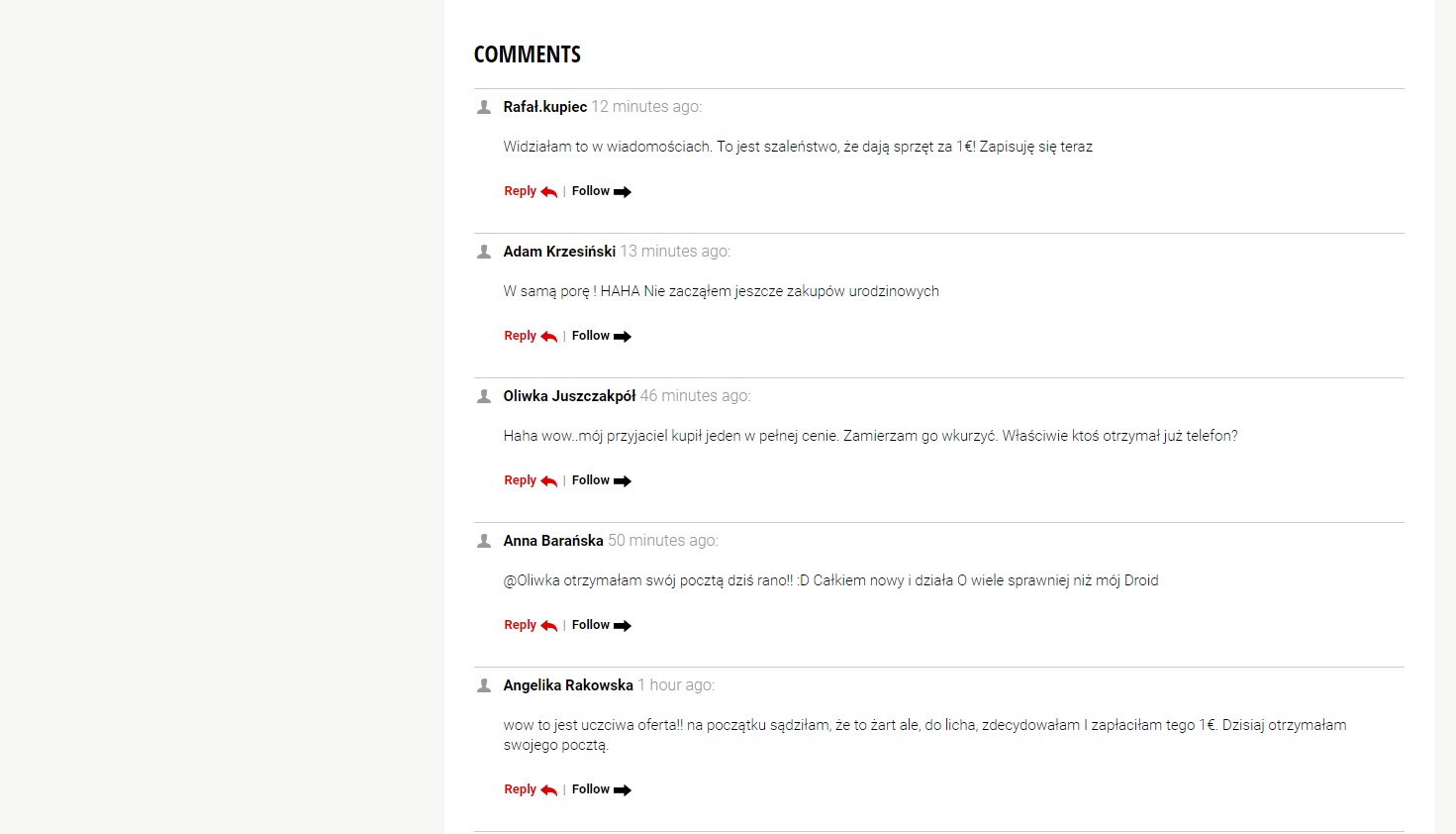 Dodatkowo żeby uwiarygodnić transakcję, przypadkowe osoby w komentarzach pod artykułem chwaliły się, że skorzystały i są zadowolone z oferty. Co więcej telefon do nich dotarł.