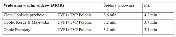 MOR: śr. widownia 8,8 mln widzów; pik 10,2 mln; TVP1+TVP Sport
