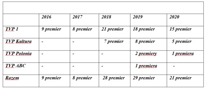 W ciągu 5 lat na antenach Telewizji Polskiej wyemitowano