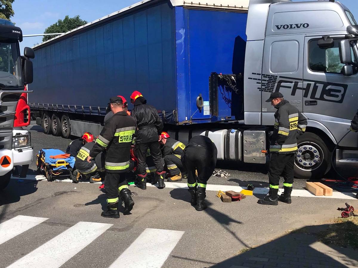 Przejechał po nim TiR powodując ciężkie obrażenia.