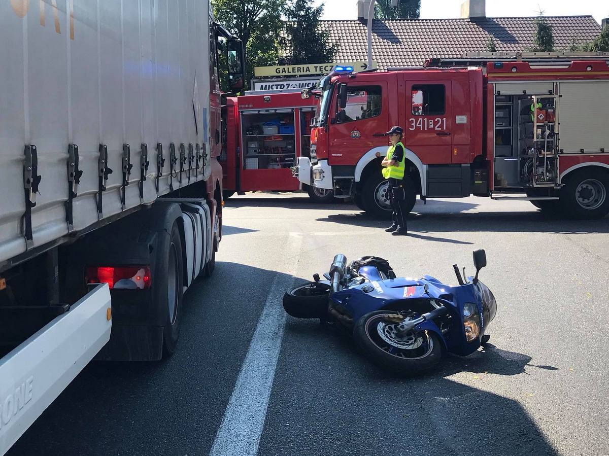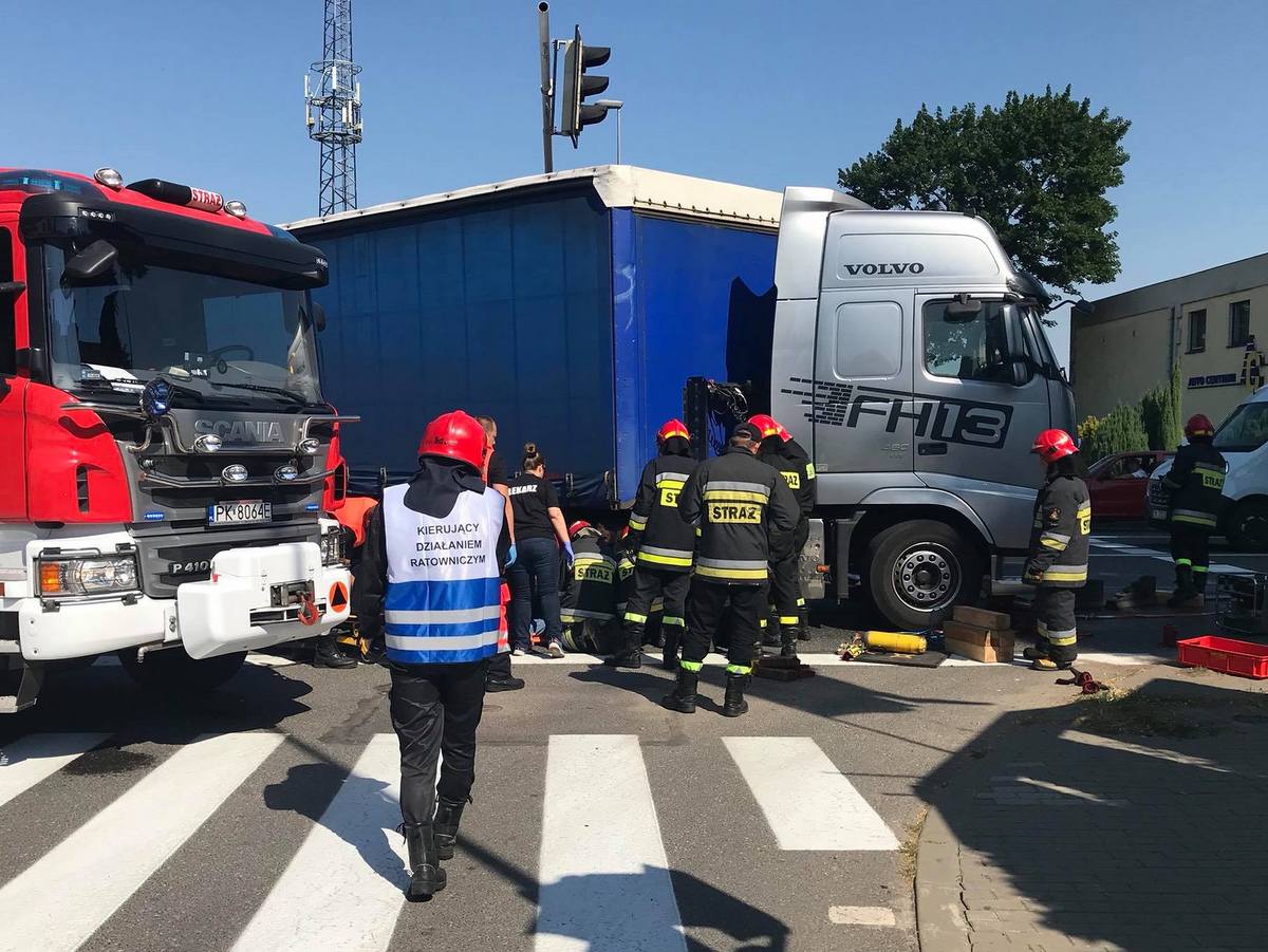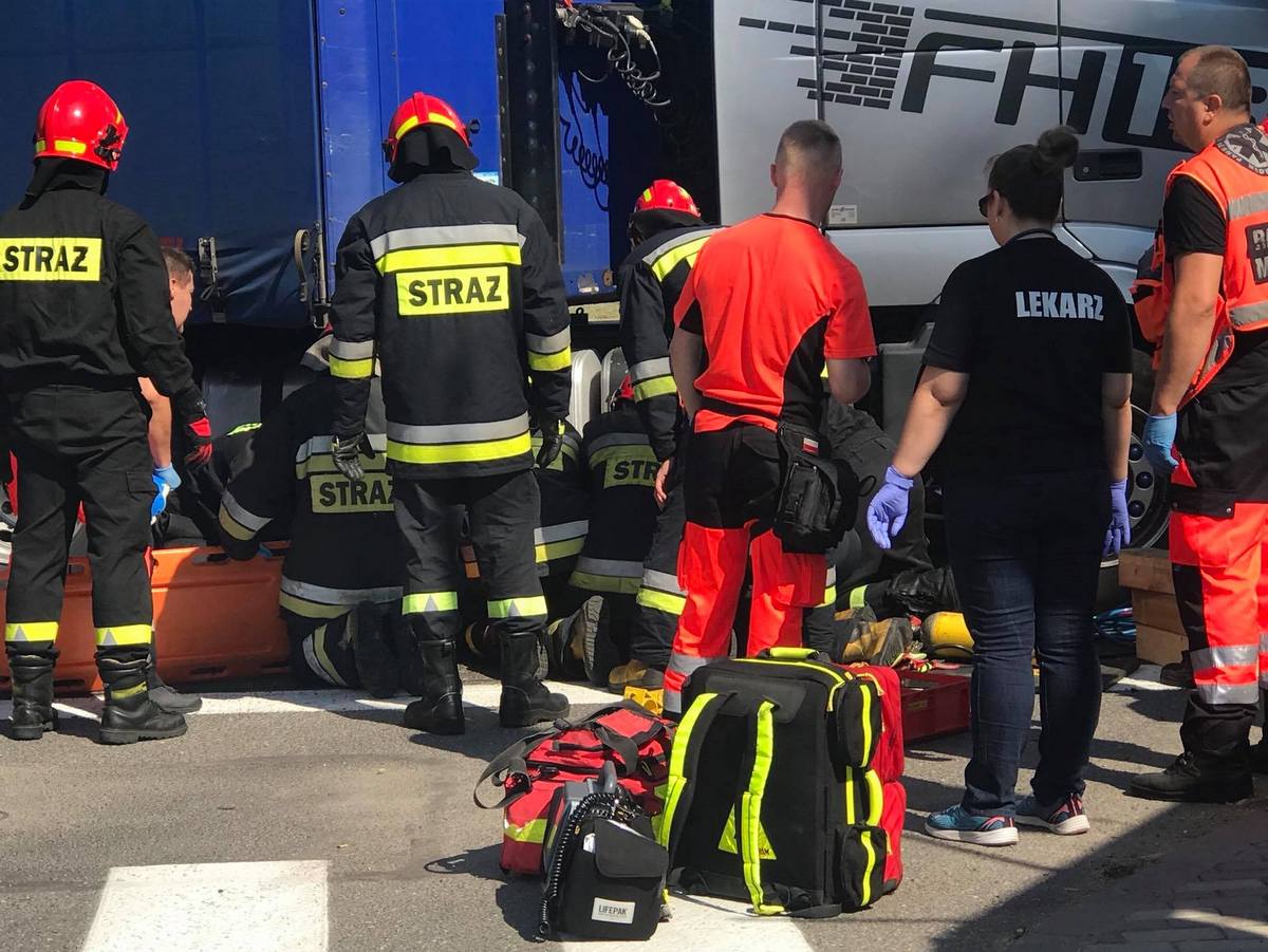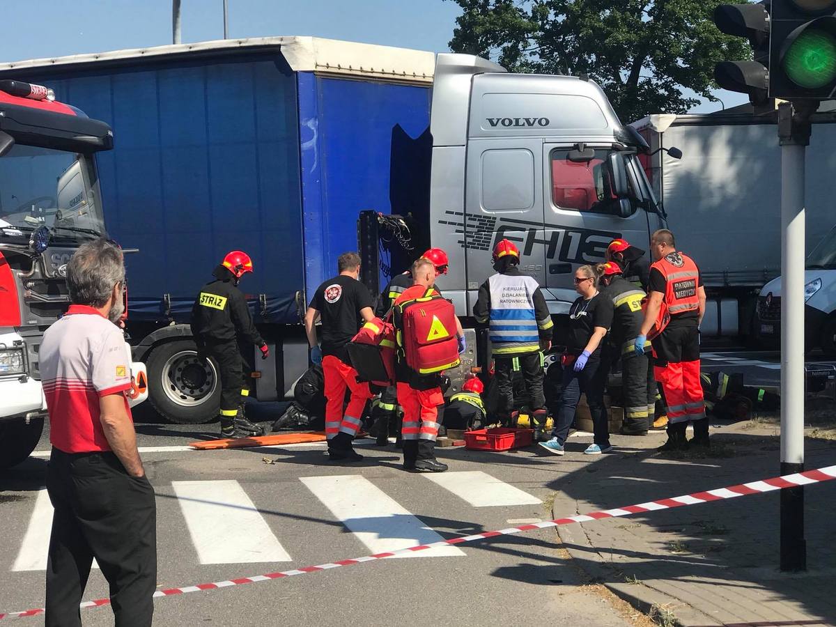 Do zdarzenia doszło około 9.00 na skrzyżowaniu ulic generała Sikorskiego i Warszawskiej w Kaliszu. Jak wynika ze wstępnych ustaleń policji, przed zmianą świateł ustawiły się dwa tiry. Oba pojazdy wyprzedził motocyklista i ustawił się przed maską jednego z nich. Gdy zapaliło się zielone światło ciężarówka skręciła w lewo i wciągnęła motocyklistę pod koła. Kierowca przejechał kawałek drogi zanim zorientował się o sytuacji. Ratownicy przez pół godziny wydobywali mężczyznę zakleszczonego pod pojazdem. Przeżył, ale w ciężkim stanie został odwieziony do szpitala.