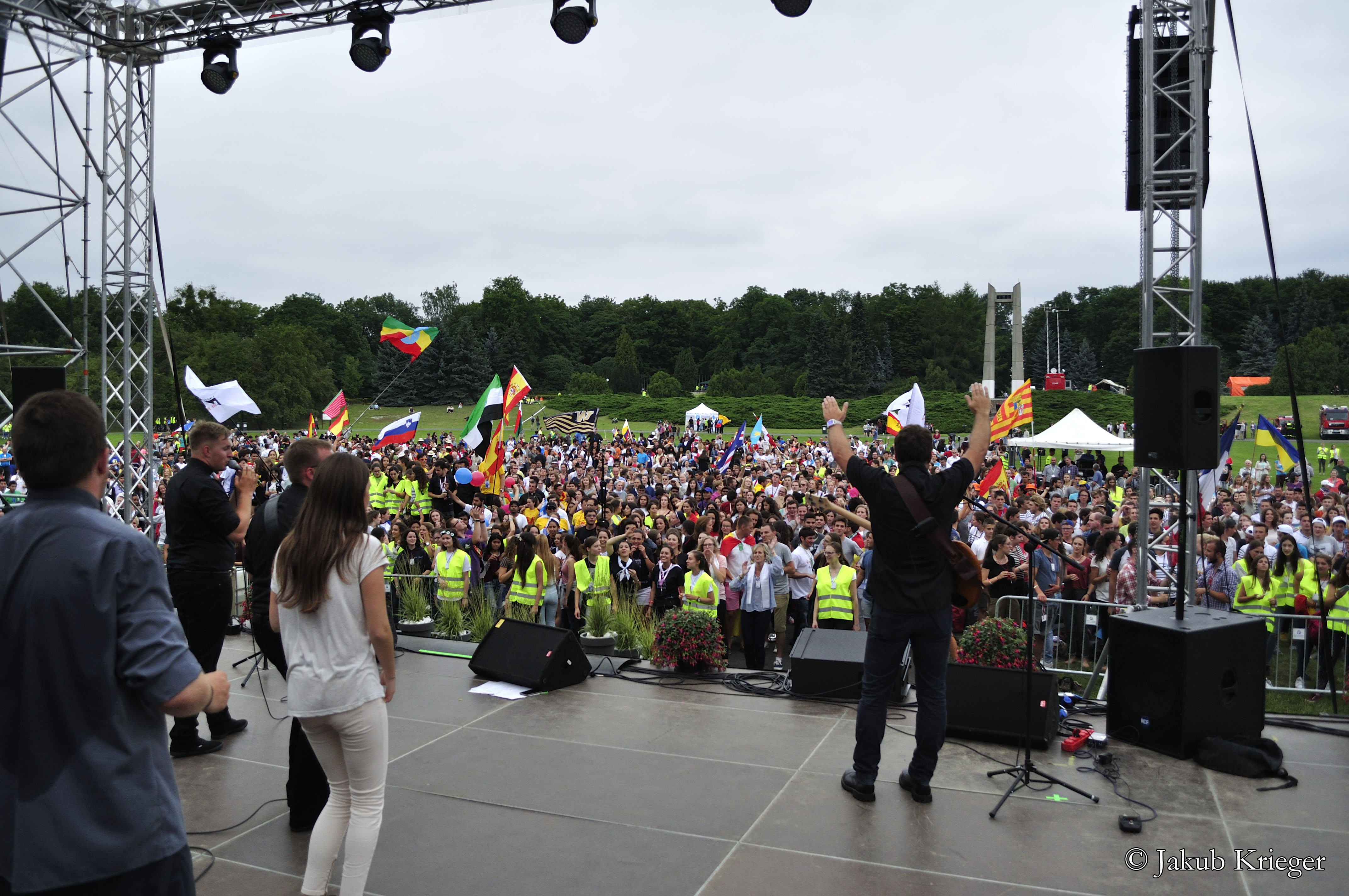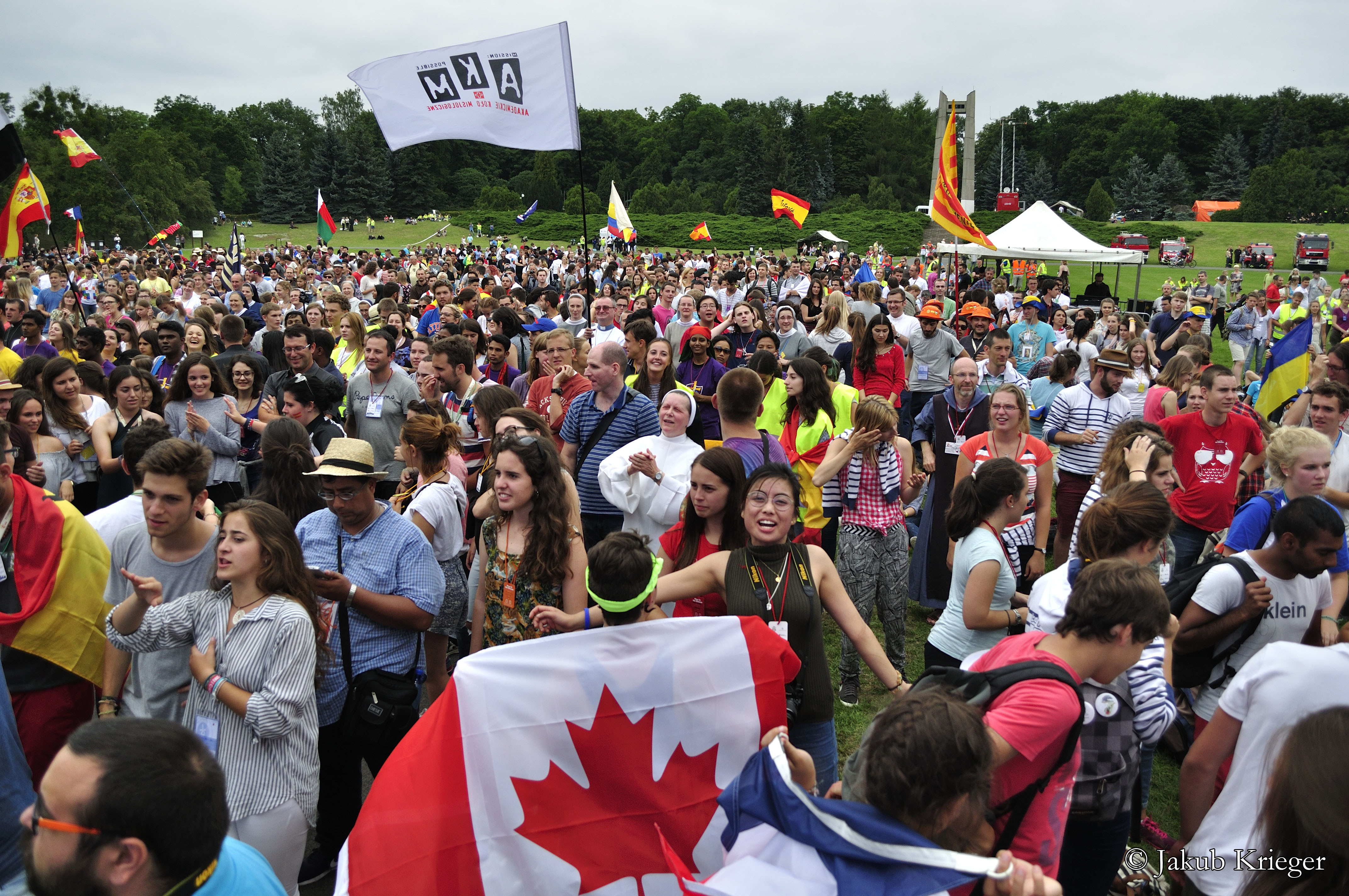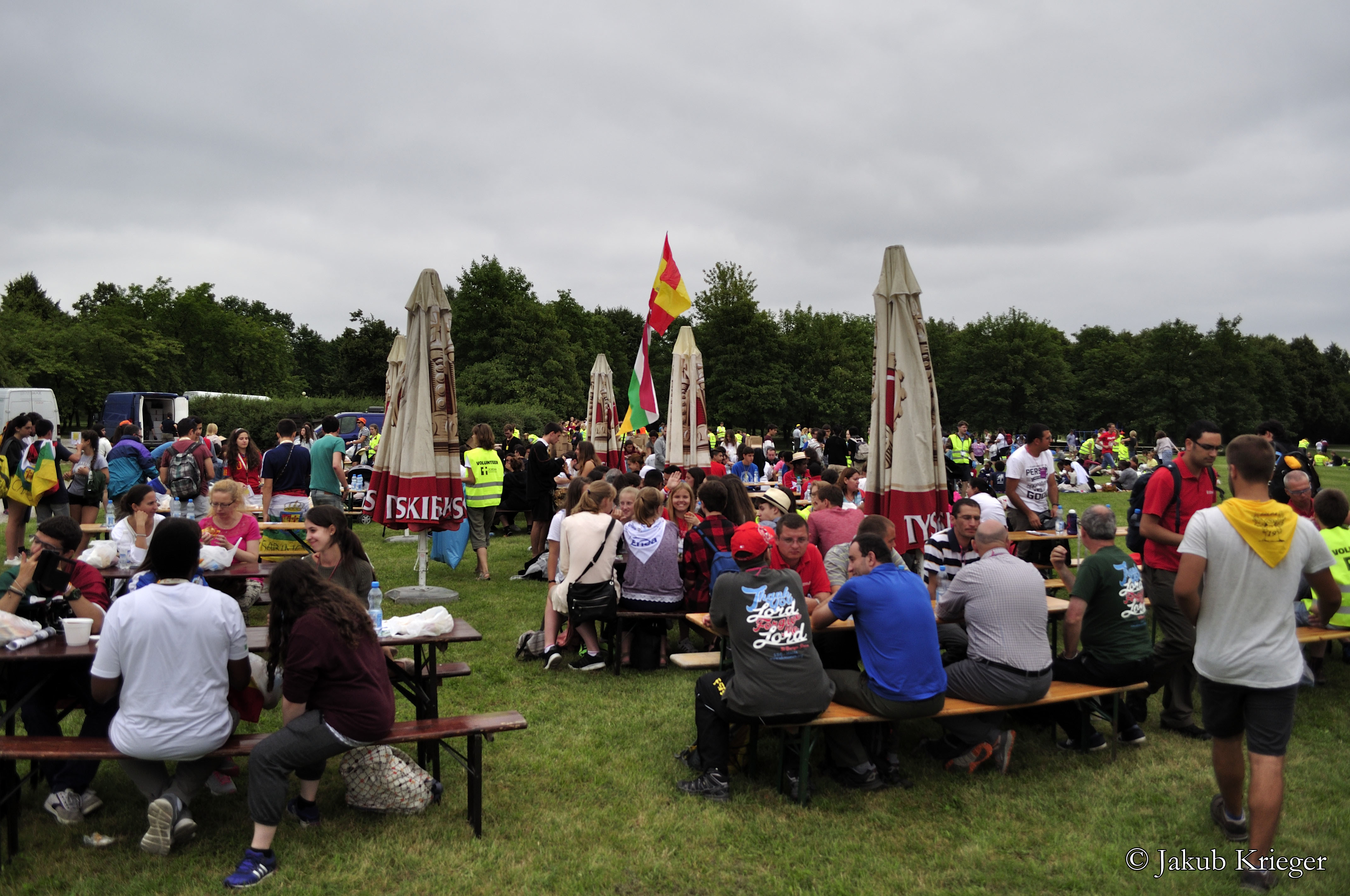 Przed południem zwiedzali miasto na ścieżkach ewangelizacyjnych. Po południu spotkali się na Cytadeli, gdzie zjedli obiad i wspólnie słuchają muzyki, modlą się i rozmawiają. Najbardziej słychać Hiszpanów, bo to największa grupa przybyszów.