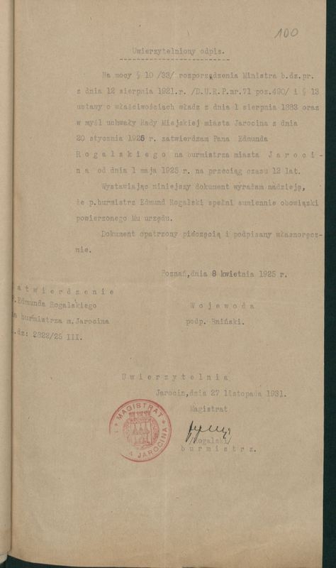 Niedawno wojewoda wielkopolski, na mocy ustawy dekomunizacyjnej, imieniem Rogalskiego nazwał dotychczasową ulicę Świerczewskiego w Jarocinie. Wojewoda zrobił to po konsultacji z samorządem miasta. Miasto podjęło też inne działania wobec dawnego burmistrza, np. postanowiło odnowić jego grób na cmentarzu parafialnym.