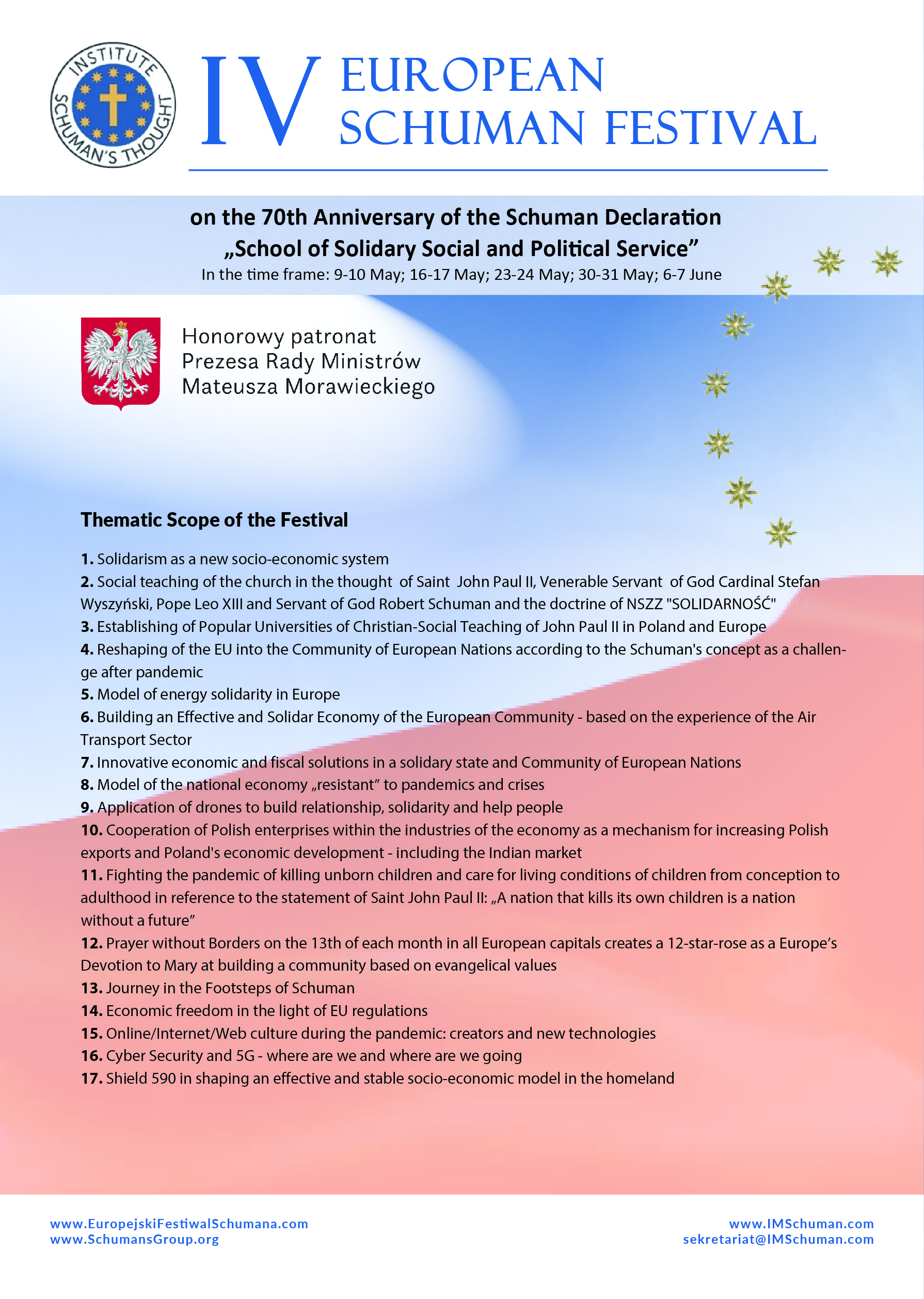 Wszystkie prelekcje i dyskusje można śledzić na kanale Youtube Instytutu Myśli Schumana.
