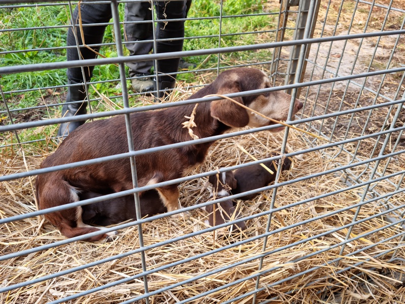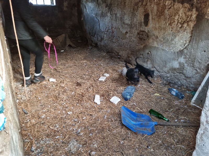 Policjanci zastali upadłe gospodarstwo rolne, na którego podwórzu znajdowało się około 20 kundelków w różnym wieku. Część z nich biegała swobodnie, część zamknięta była w pseudokojcach oraz w pomieszczeniach po byłych oborach czy świniarniach. W tych zamkniętych pomieszczeniach znajdowało się zbyt dużo zwierząt, które nawzajem się atakowały. Na całym podwórzu panował bałagan, policjanci brodzili w psich odchodach. Psy ujadały nerwowo. Wśród nich była suczka ze szczeniakami. Leżała w brudnej od odchodów słomie w jednym z pomieszczeń. Trzęsła się z zimna