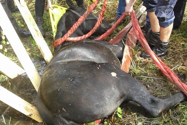 Ratunkiem okazały się deski, które po wbiciu w bagno posłużyły jako oparcie dla zwierzęcia. Dopiero wtedy przeciągnięto pod koniem liny i ratownicy rozpoczęli powolne wyciąganie zwierzęcia z bagna. Po zakończeniu wyczerpującej akcji strażnik Bartosz Falk powiedział: "Pierwszy raz widziałem jak takie wielkie zwierzę płacze. Było zrezygnowane i poddało się nam całkowicie w nadziei, że go uratujemy. Udało się - mówił Bartosz Falk.