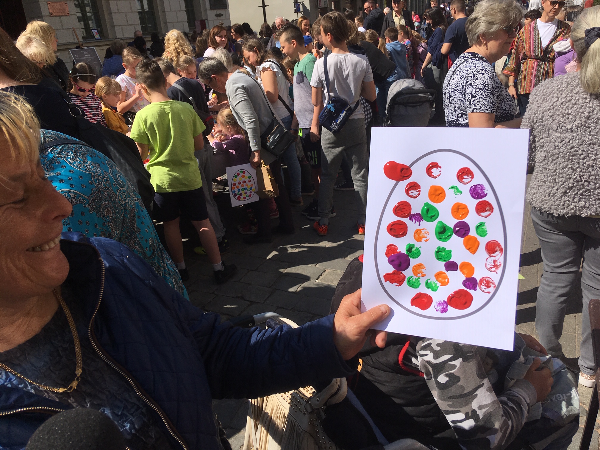 Dzieciaki malowały na jajkach buzie, kreski, kropki. Rodzice pomagali staranniej dobierając modne kolory. Rodzice komentowali ze to fajna impreza która przed świętami jednoczy ludzi. To ważne w dzisiejszych czasach gdzie łatwiej się powyzywać niż się fajnie razem bawić.