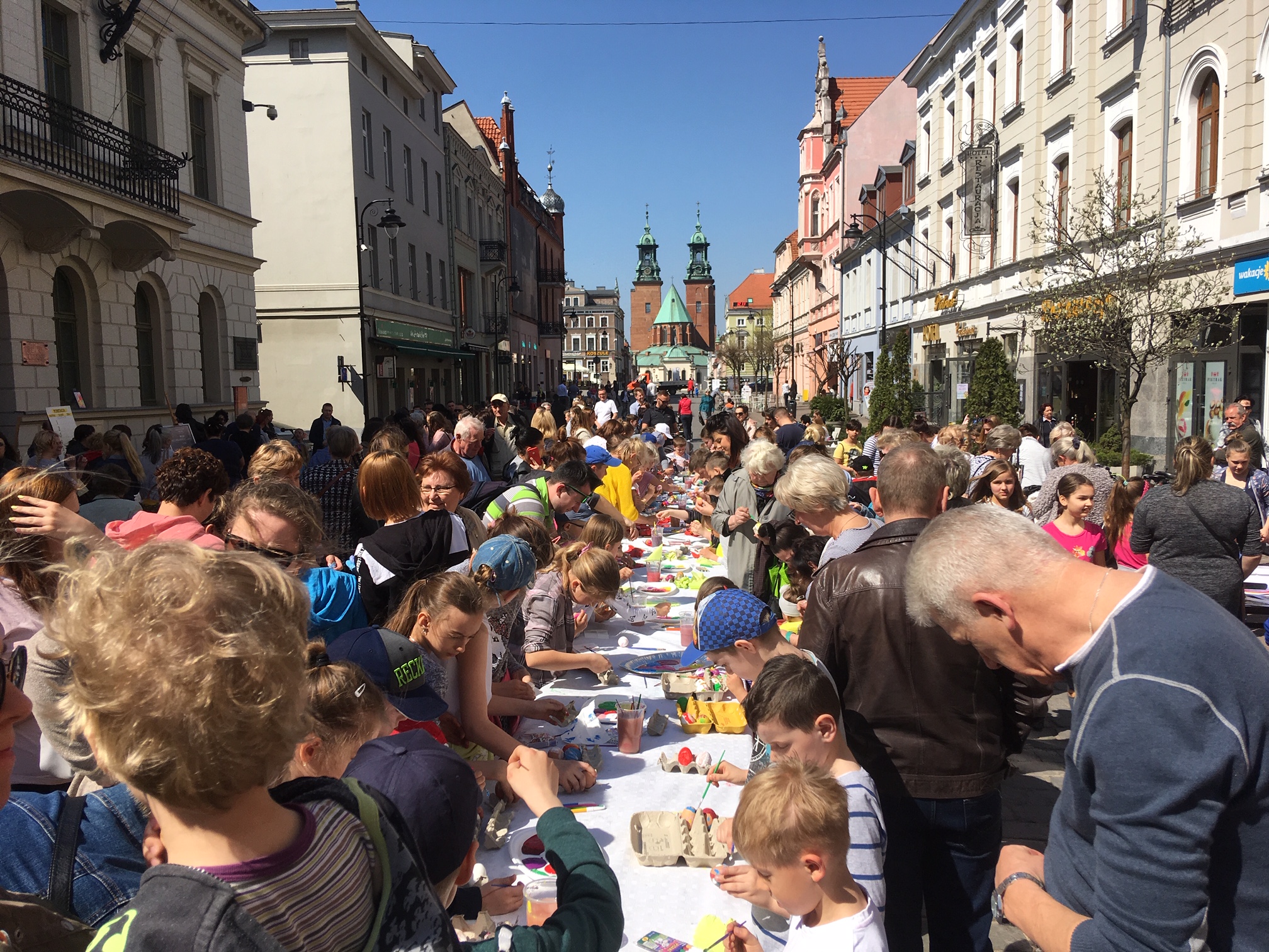 Tysiąc jaj pomalowanych w Gnieźnie na wielkiej gali malowania jaj. Miejski Ośrodek Kultury przygotował na starówce długi stół, farby i zapewnił gotowane jajka, które później można było zabrać do domu. Dzieci z rodzicami - natychmiast zabrały się do pracy.
