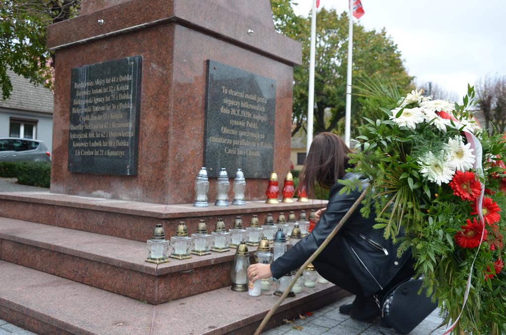 Fot. Znicze zapalone w Miejscach Pamięci Narodowej w Pleszewie i okolicach: pod pomnikiem 7 Polaków rozstrzelanych w Boreczku, pod pomnikiem 300 zabitych w obozie pracy w Łaszewie, pod tablicą pamiątkową ku czci zamordowanych na gestapo przy ul. Sienkiewicza w