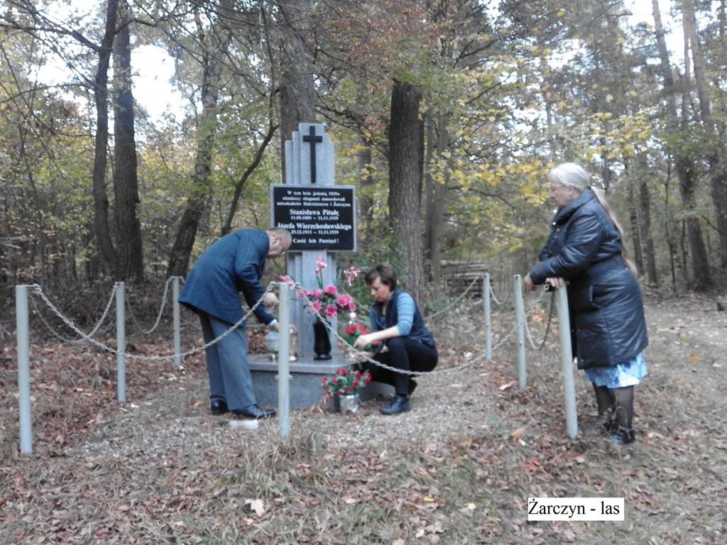 Fot. Znicze pod: Pomnikiem w Lesie Bytynskim k. Grzebieniska oraz pod pomnikiem Walk i Męczeństwa w Dusznikach - Towarzystwo Miłośników Ziemi Dusznickiej