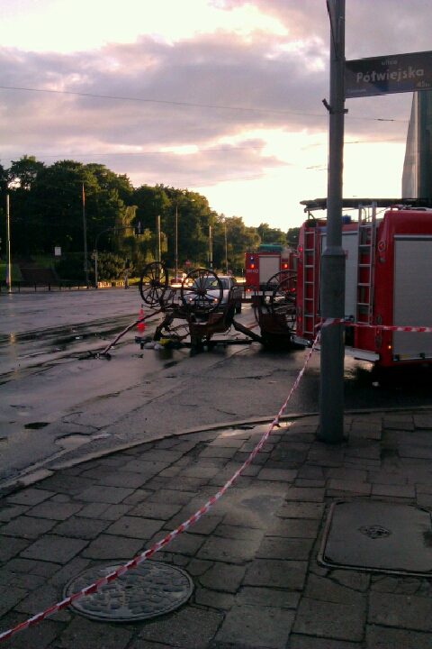 W wypadku zginął jeden z dwóch koni. Drugi został opatrzony przez weterynarza, ale ma połamane nogi. Przez ponad godzinę zamknięta była część ulicy Królowej Jadwigi. W okolicach tworzyły się przez ten czas olbrzymie korki.