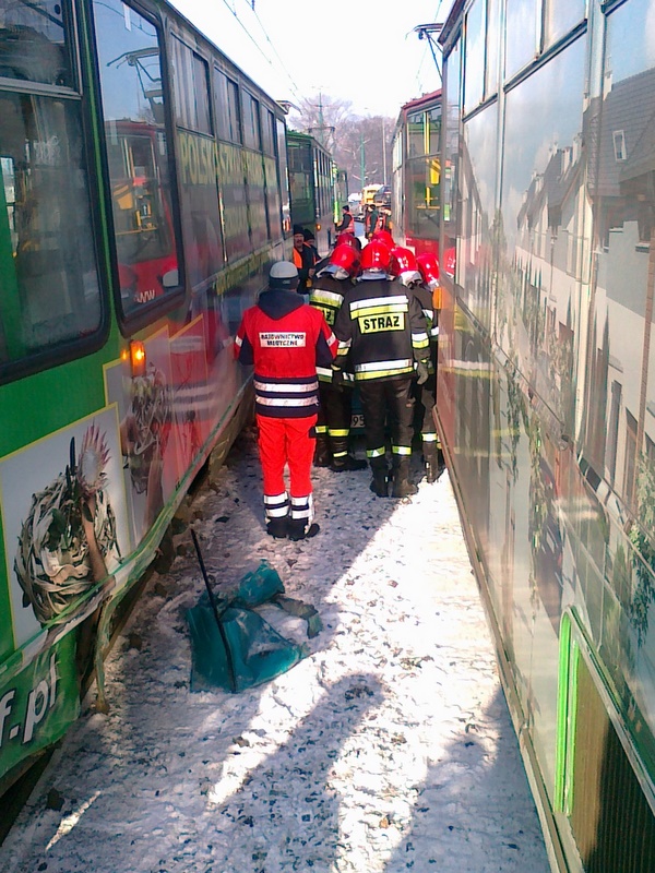 - Kobieta miała dużo szczęścia, że wpadła na torowisko i została wepchnięta między, a nie pod tramwaj - powiedział reporterowi Radia Merkury motorniczy jednego z dwóch tramwajów biorących udział w wypadku.