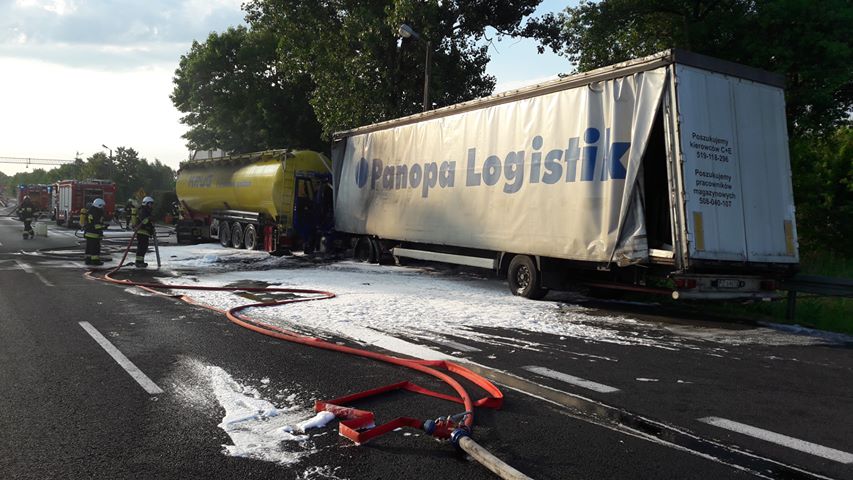 Do wypadku doszło po godzinie 5.00 rano. Po uderzeniu ciężarówka się zapaliła. Strażacy uwalniali zakleszczonego kierowcę z kabiny, ale nie udało się go uratować. Utrudnienia w miejscu wypadku mogą potrwać kilka godzin. W akcji uczestniczyło 13 zastępów Straży Pożarnej. Część jest jeszcze na miejscu. Z cysterny, w którą uderzył TIR, wysypał się pył węglowy. Trzeba go teraz usunąć z drogi.