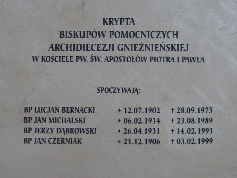 Biskup Lucjan Biernacki w okresie stalinizmu był przez trzy lata internowany ale w Gnieźnie zasłużył się dzięki odbudowie katedry zniszczonej w 1945 roku. Bp Jan Michalski dał się poznać jako gorący orędownik budowy kościołów, co w czasach PRL-u nie było łatwe. Ich trumny i trumny ze szczątkami biskupów Jerzego Dąbrowskiego i Jana Czerniaka pochowano w odnowionej krypcie kościoła z XVII wieku.