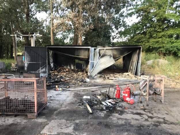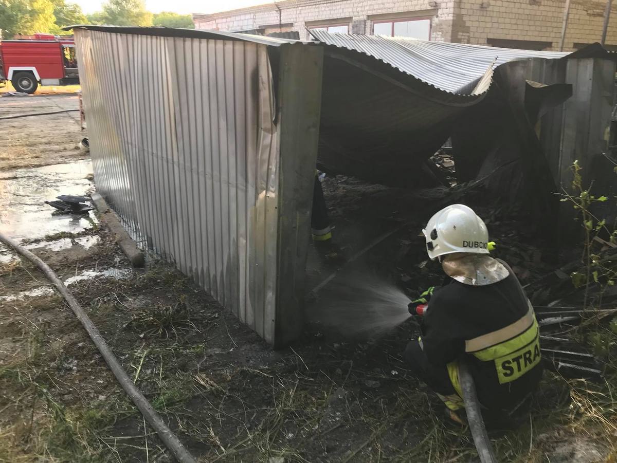 Dyżurny OSP Szamocin otrzymał informację o pożarze na terenie zakładu produkującego podpałkę w miejscowości Nadolnik. Po przybyciu okazało się, że ogniem zajęły się dwa blaszane garaże, w których znajdowała się duża ilość podpałki oraz sprzęt podręczny. Pożarem zagrożony był również pobliski las.