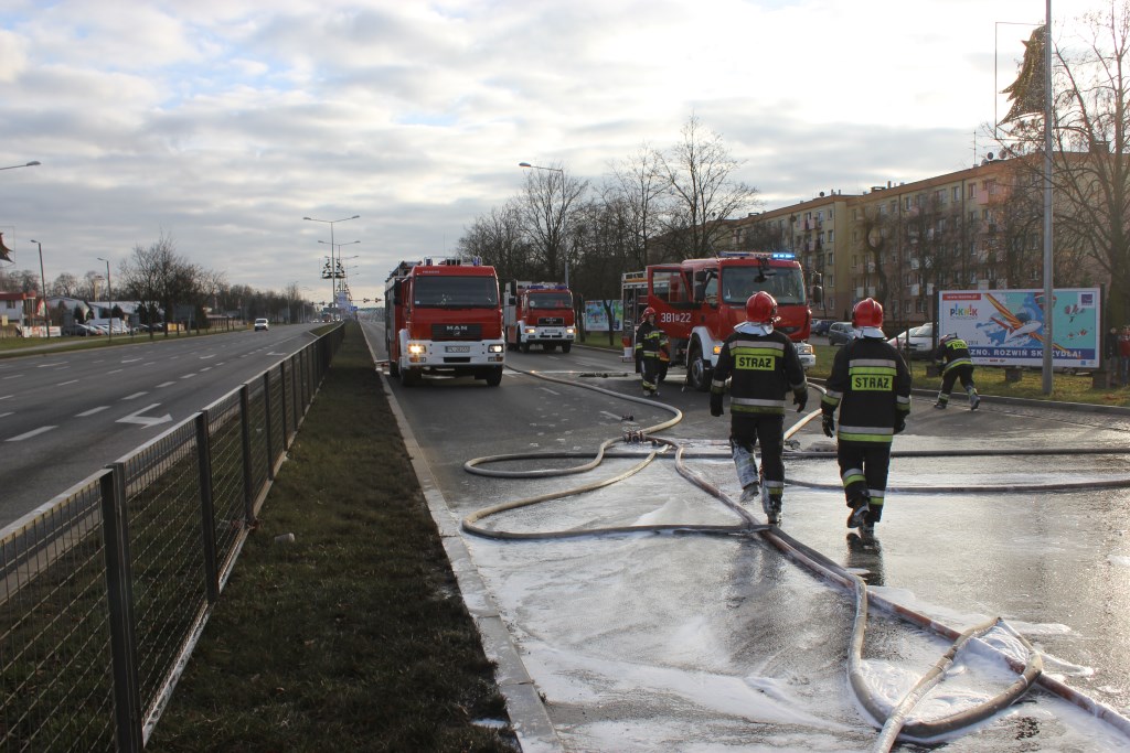 Strażacy udzielili pierwszej pomocy poszkodowanym, ugasili palącą się się ciężarówkę, a potem posprzątali rozlane płyny oraz resztki powypadkowe. Policja zorganizowała objazd ulicami miasta.