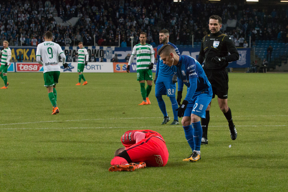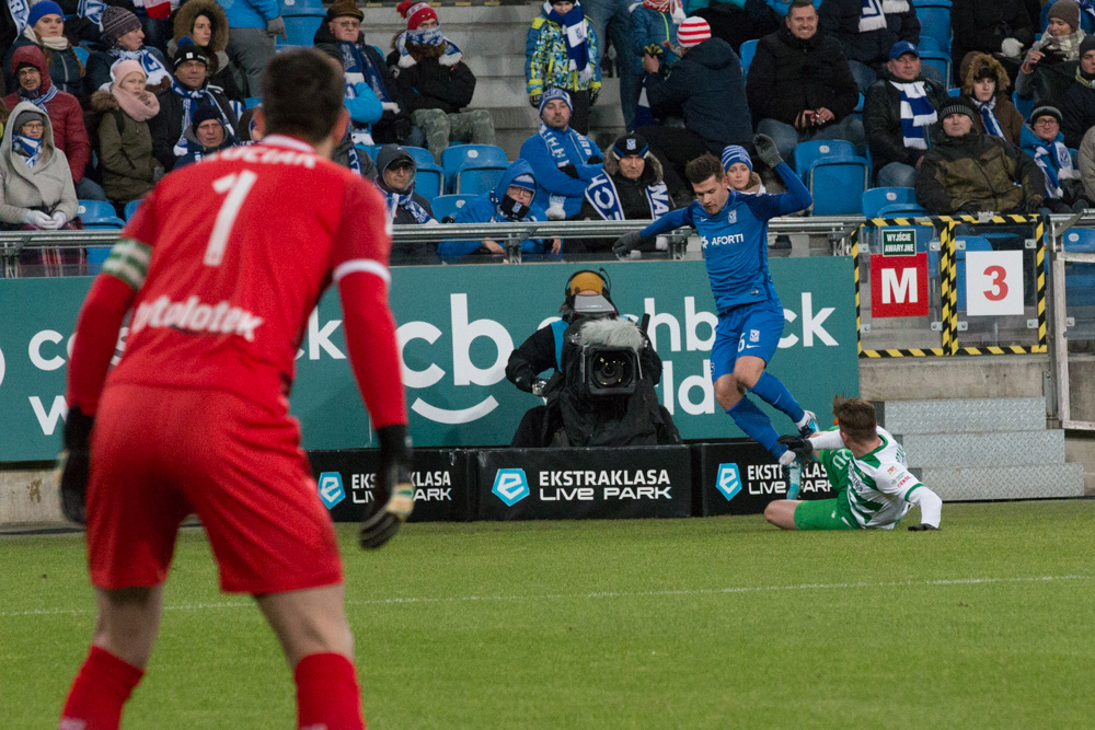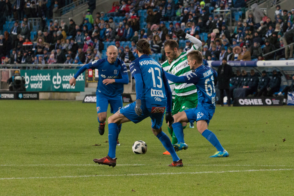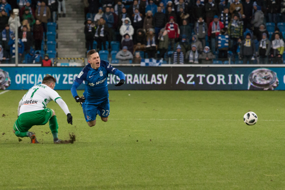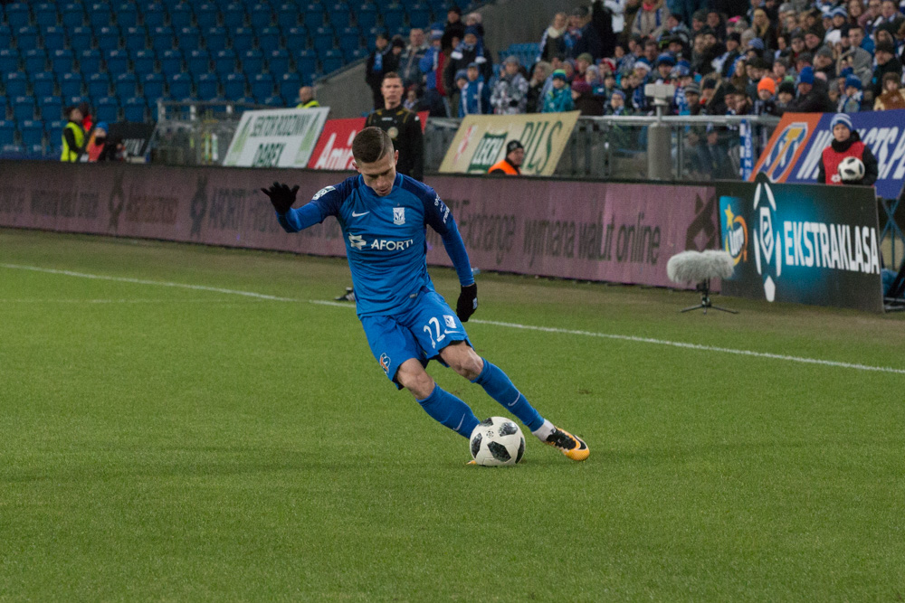 Lech zbliżył się do dwóch prowadzących w tabeli zespołów na dwa punkty, ale Jagiellonia dzisiaj zagra u siebie z Arką, a Legia dopiero jutro podejmie Wisłę Kraków.