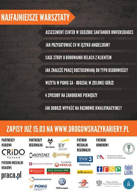 Największa organizacja studencka w kraju - Niezależne Zrzeszenie Studentów - jak co roku organizuje "Drogowskazy Kariery". Jest to projekt przeznaczony dla studentów, mający naprowadzić ich na odpowiednią drogę kariery zawodowej i rozwoju, który będzie się składał z cyklu warsztatów odbywających się na trzech poznańskich uczelniach: UAM, Uniwersytecie Ekonomicznym i Politechnice Poznańskiej.